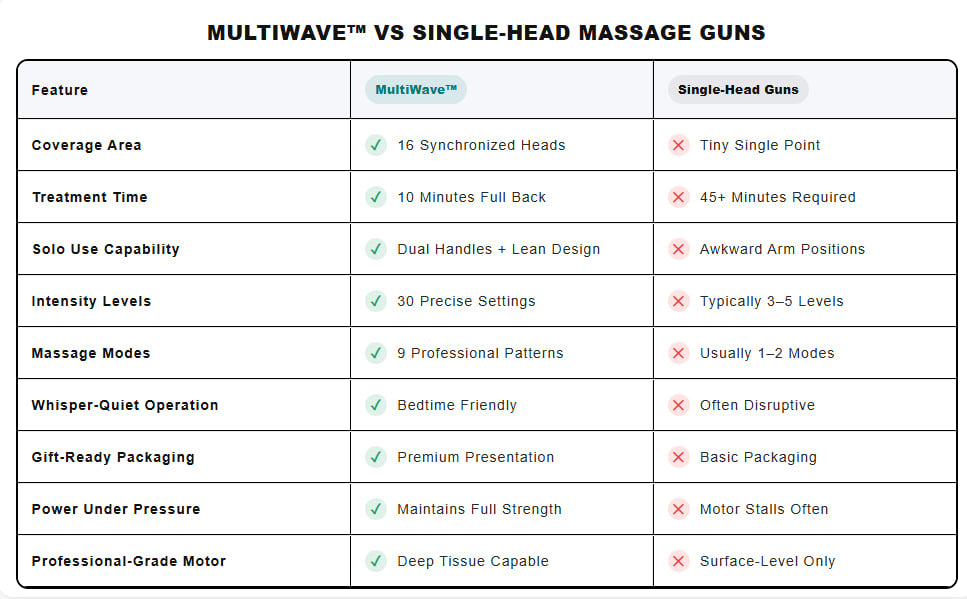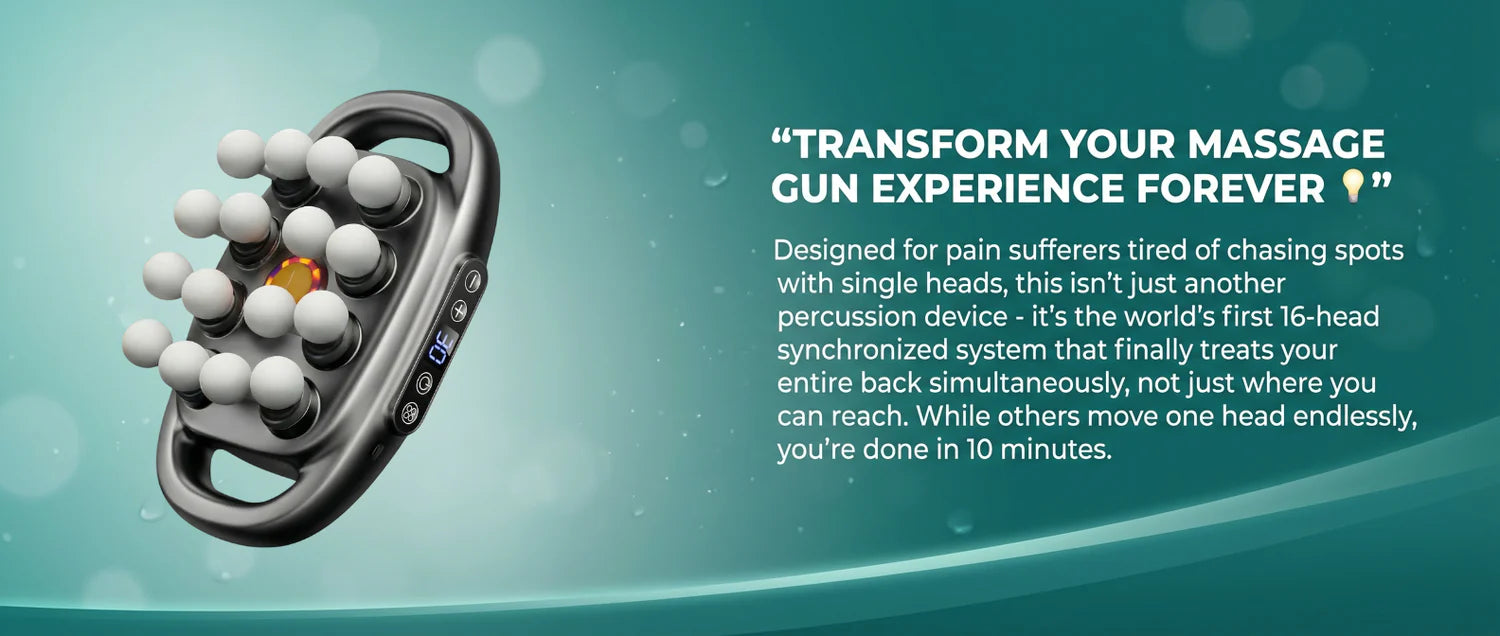 If you've tried single-head massage guns, foam rollers, and expensive therapy sessions without complete relief, here's what nobody mentions: they only treat one spot at a time.