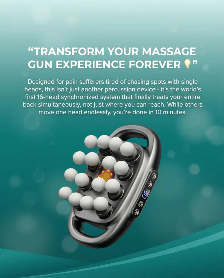 Experience the breakthrough16-Head Synchronized Technologythat's helping thousands escape the single-spot limitation. This isn't just another massage gun — it's your personal team of 16 therapists working in perfect harmony.