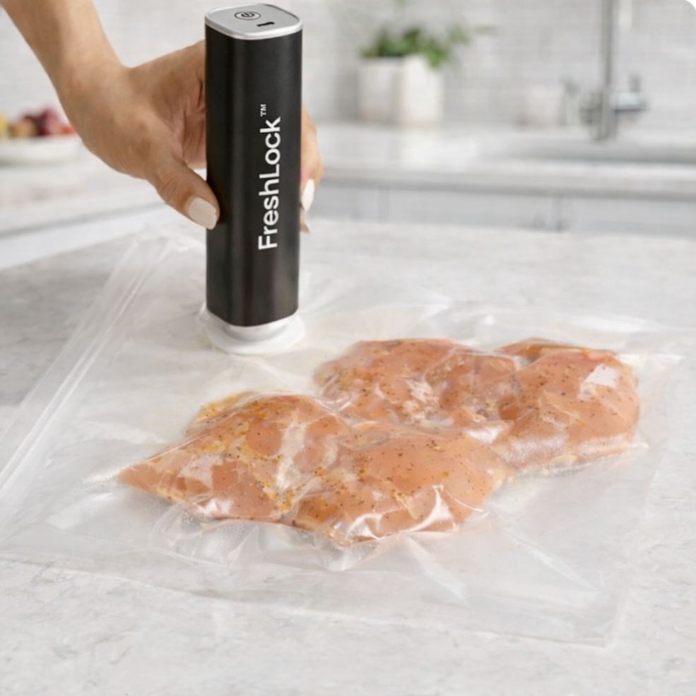 Vacuum Genie removes oxygen in seconds, keeping food fresh longer